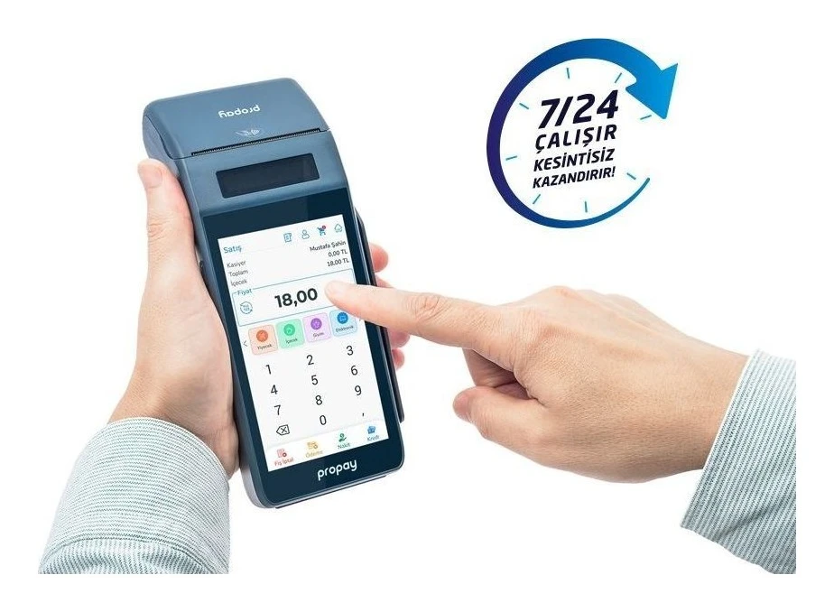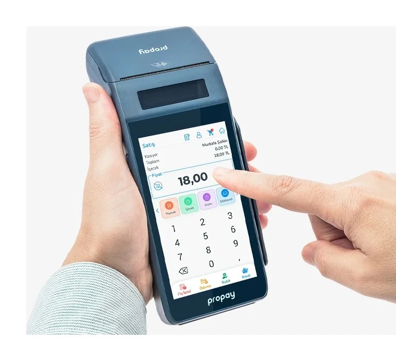 Android 13 işletim sistemi, 5 inç yüksek çözünürlüklü dokunmatik ekranı, 4 çekirdekli işlemcisi, 4G ve Wi-Fi bağlantısı ile hızlı ve kesintisiz ödeme deneyimi sunan Android Yazar Kasa POS cihazı.